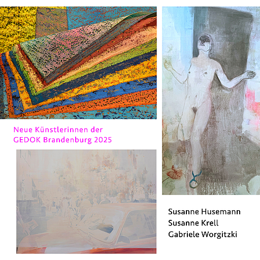 Herzliche Einladung zur Eröffnung der Ausstellung unserer neuen Mitglieder 2025 mit Susanne Husemann, Susanne Krell und Gabriele Worgitzki