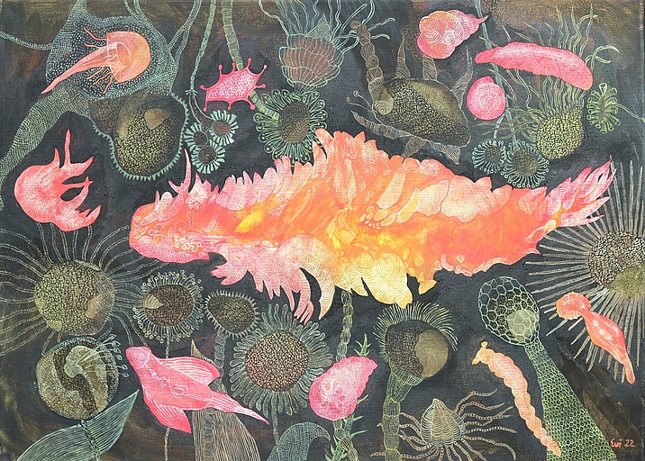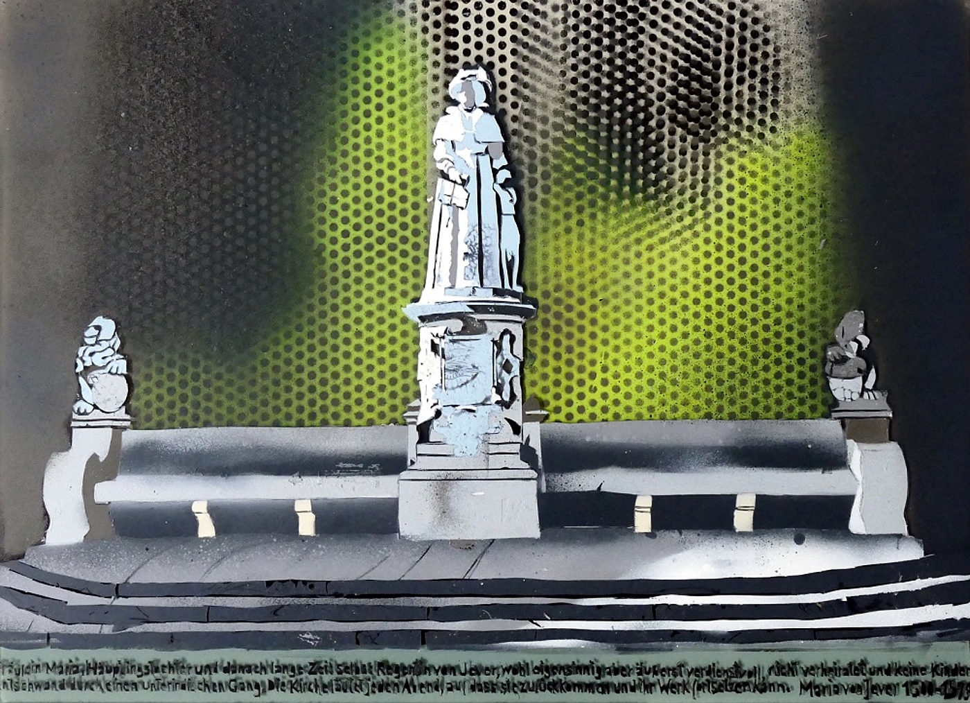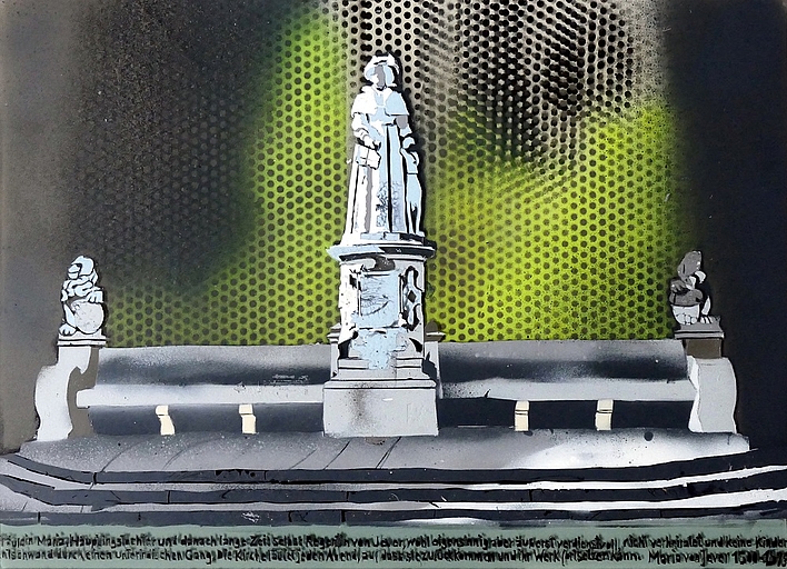 Die GEDOK Brandenburg stellt ihre neuen Mitglieder vor, die in der Malerei, Grafik, Bildhauerei, Musik und Literatur tätig sind. Frauke Beeck (*1960) lebt und arbeitet in Berlin und Bremen. In ihrer Beschäftigung mit Denkmälern berühmter Frauen arbeitet sie in Spraybildern zur (fehlenden) Präsenz von Frauen im öffentlichen Raum wie auch im kulturellen Gedächtnis. Die Bildhauerin und Medienkünstlerin Sophie Ernst setzt sich mit Repräsentation und Wahrnehmung auseinander und lehrt Kunst als soziale Praxis. Sie zeigt Fotogravuren aus ihrer aktuellen Serie, die „leblose“ Skulpturen mit Bildern von Haut überlagert. Evelin Grunemann (*1952) hat Kunst auf Lehramt studiert und arbeitete in den 1980er Jahren als wissenschaftliche Mitarbeiterin bei der Galerie Junge Kunst in Frankfurt/Oder. Seit 1988 ist sie freischaffend als Malerin und Grafikerin tätig und fertigt starkfarbige Gemälde an, die aus dem Ornament erwachsen. 1964 geboren hat Bettina Lehfeldt Grafikdesign an der Schule für Gestaltung Basel studiert und arbeitet seit 1995 als freischaffende Grafikerin und Malerin. Ihre mittel- bis großformatigen Gemälde befassen sich mit dem Wechselspiel von Farbe, Pinsel und Fläche. Ulrike Lösing hat an der Universität der Künste Berlin Malerei, Zeichnung, Fotografie und Kunst im Kontext studiert und stellt seit 1989 regelmäßig aus. Ihre Gemälde entstehen prozesshaft in Serie aus dem Material und erwecken Welten zum Leben, die verspielt bunt Fetzen des Altags zusammenführen. Prapatti Susanne Starke hat an der Hochschule für Bildende Künste Dresden und der École Des Beaux Arts in Paris studiert und 2004 ihr Diplom in Dresden gemacht. In Zeichnungen und Skulpturen setzt sie sich mit mythischen Gestalten aus den unterschiedlichsten kulturellen Kontexten auseinander, die sie durch die farbige Behandlung im Hier und Jetzt verortet. Tier-Mensch-Mischwesen erheitern, irritieren, verstören.
